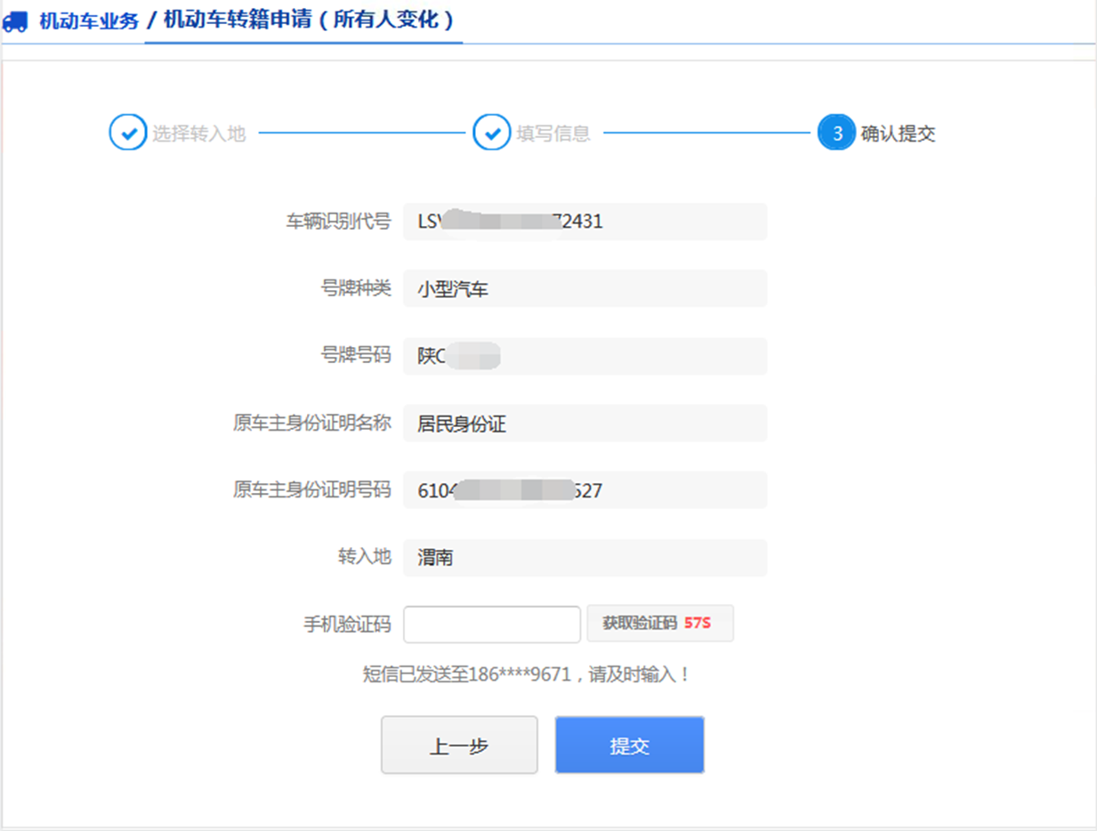 該步驟顯示用戶購買車輛信息、轉入地信息。