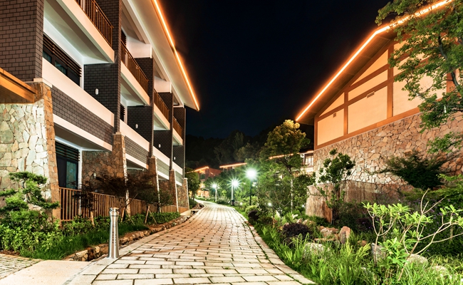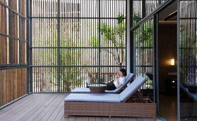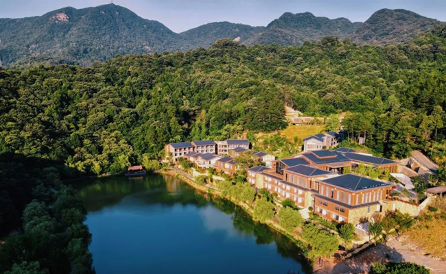 酒店的設計為園林式風格,院內花草樹木眾多,自成景點。酒店房型有園景房、湖景房、樹屋、別墅等,最有特色的房間當數獨棟樹屋。獨棟樹屋有超大的觀景陽臺,可以一家人來到這里看日出、賞夕陽、觀滿天繁星,還可以帶孩子親近大自然、體驗大自然、融入大自然。