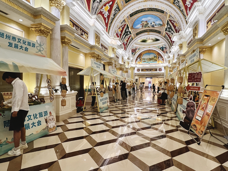 8月29日,2025年隨州市文旅發展大會舉行。圖為在隨州碧桂園鳳凰酒店一樓大廳的“文創集市”與“戀上隨州”主題展區。??