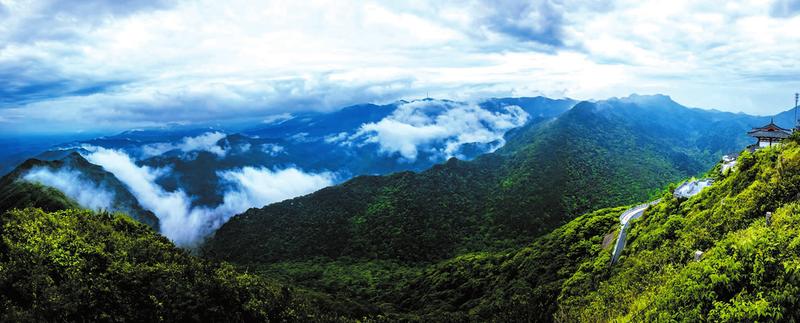 寶珠峰海拔1055米,是大洪山最高的山峰,也是楚北大地迎接晨曦的第一縷陽光的地方。重建的大慈恩寺金頂位于峰頂,巍峨雄偉,氣勢輝煌。登臨其上,不僅可以觀日出,賞夕陽,還可以看云海。憑欄覽勝,遠近風光盡收眼底,既無車馬之喧,也無雜事紛擾,讓人澄心滌慮、神清氣爽。