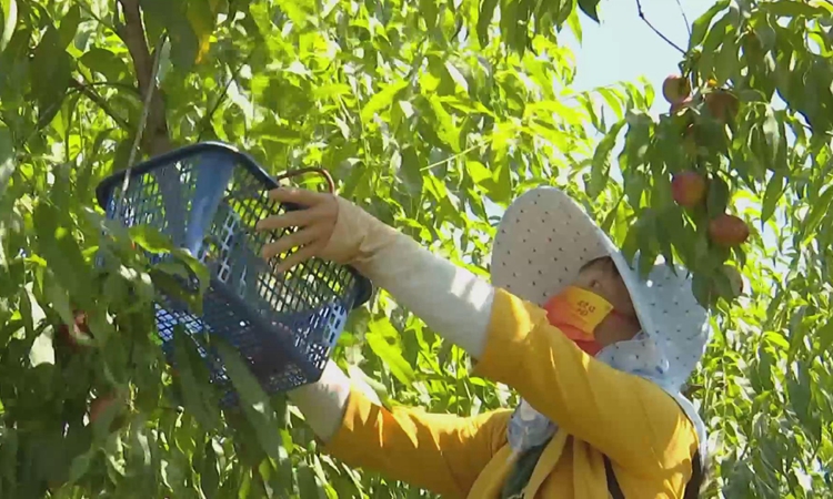 七月的花果海,呈現一派豐收喜人的景象。藍天下,山崗上,一排排桃樹坐落林間,一個個鮮桃掛滿枝頭。步入桃林,陣陣桃香撲鼻而來,讓人垂涎欲滴,眾多慕名而來的游客盡情享受著采摘之樂。