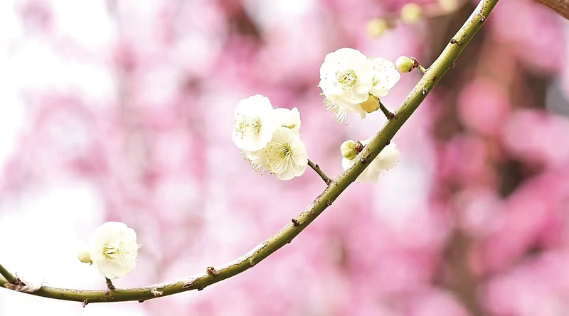 隨州日報訊(全媒記者李文軍)2月27日,記者在隨城白云公園看到,園內梅花綻放,紅、粉、綠三色花瓣在暖陽下競相搖曳,暗香浮動。 ?