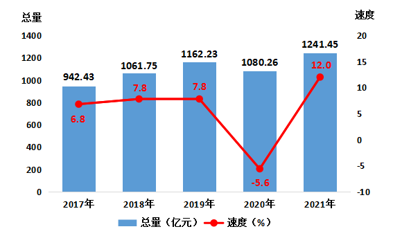 圖1:2017-2021年隨州生產總值及其增速