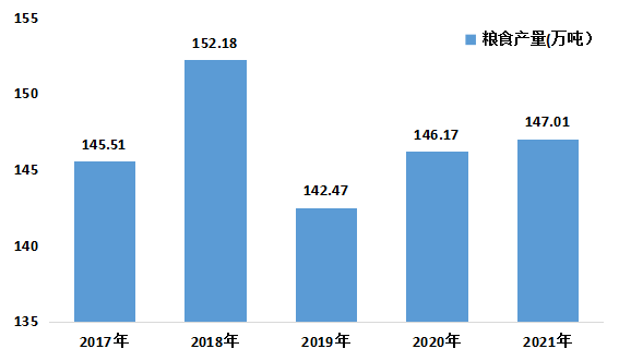 圖2:2017-2021年隨州糧食產量