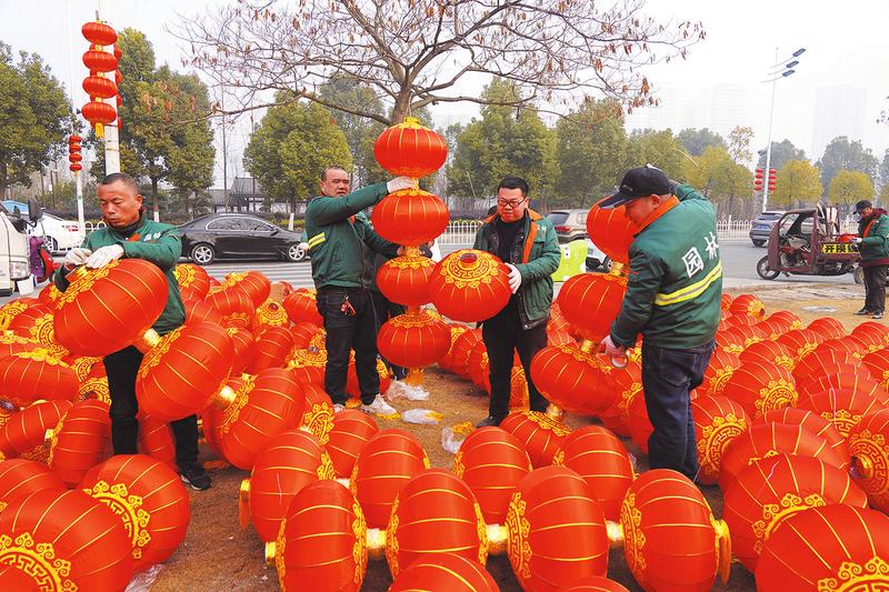 掛燈籠迎新春,是中國的傳統(tǒng)習(xí)俗,燈籠象征著平安祥和、事業(yè)興旺、紅紅火火。為了讓市民度過一個美麗、祥和、喜慶的春節(jié),市園林部門自1月19日起,在隨城迎賓大道兩側(cè)懸掛燈籠,迎接農(nóng)歷新年的到來。圖為園林工人正在組裝燈籠。