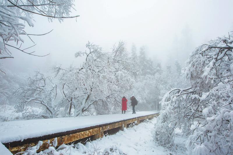 ??1月28日,大雪之后的大洪山風景名勝區一片潔白世界,霧凇、雪淞,冰清玉潔,晶瑩剔透,讓人仿佛置身在人間仙境里。