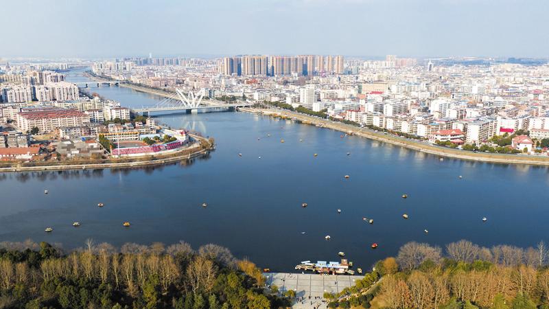 近日天氣晴好,許多市民泛舟白云湖上,欣賞隨城美景。