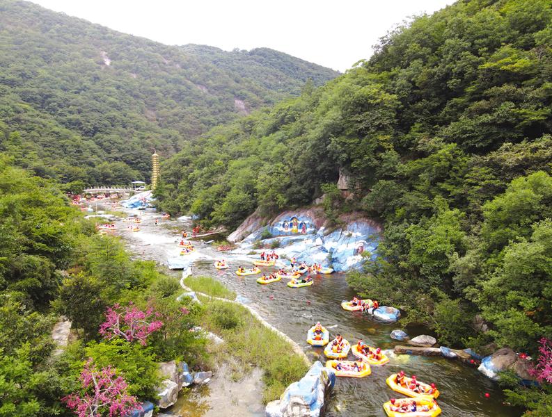 持續高溫天氣,隨州西游記漂流迎來客流高峰,尤其是升級后的可同時乘坐四人的親子互動船,受到以家庭為單位的自駕游群體的青睞。入夏以來,西游記漂流景區日均接待游客4000余人次,周末時日均客流達7000余人次。圖為8月11日在西游記漂流景區,游客歡樂體驗千里淮河第一漂,暢享夏日美好生活。