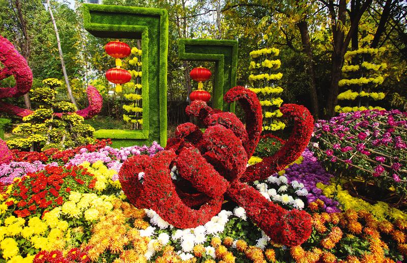 菊花展區,20余個品種近6萬盆菊花,采用立體景點展示、造型菊藝小品、繽紛花道以及精品菊展示等形式,精心打造“神韻隨州·國泰民安”、“歡慶二十大·永遠跟黨走”、“創新高地·產業新城”等12個特色主題展區,融入“編鐘”“專汽”等隨州地域文化元素。