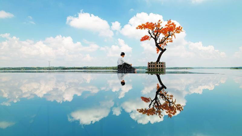 ??廣水市明月灣景區(qū)新打造的天空之鏡玻璃棧橋,水天一色,成為游客拍照打卡的新去處。