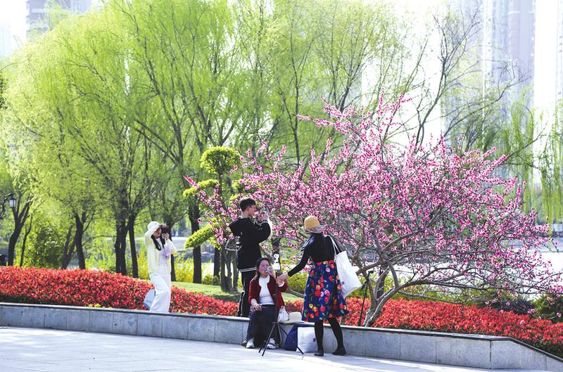 3月20日,天氣晴朗。市民紛紛走出家門,到公園、廣場、綠道等地,出游踏青,感受美好春光。??