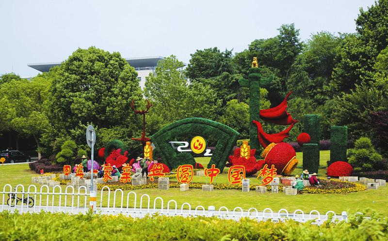 為以靚麗的城市形象迎接尋根節(jié),5月下旬,市城管執(zhí)法委組織白云公園等相關(guān)單位,在隨州城區(qū)迎賓大道、白云大道、高鐵南站、府河大橋等道路和點(diǎn)位,懸掛道旗,擺花布景,全面營造喜慶祥和、潔凈優(yōu)美的節(jié)日環(huán)境。圖為園林工人正在市政府北坡擺花布景。