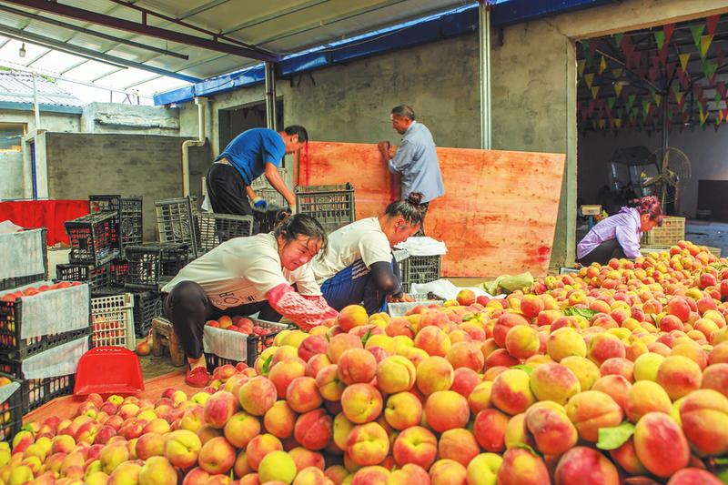 今年春季我市氣溫較低、氣候干爽,水果產量比往年有所減少,但水果品質變得更好,贏得了市場青睞,果農減產反增收。圖為6月12日,隨縣尚市鎮太山村毛桃、黃桃收購點繁忙的景象。