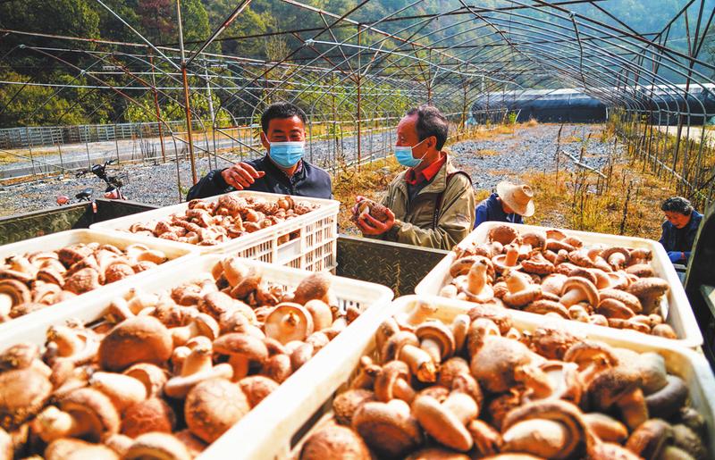 10月24日,游客在曾都區(qū)洛陽鎮(zhèn)購買新采摘的香菇。據(jù)當?shù)毓睫r(nóng)介紹,今年香菇行情看漲,他們每天采摘的香菇大多第一時間發(fā)給外地的客商。
