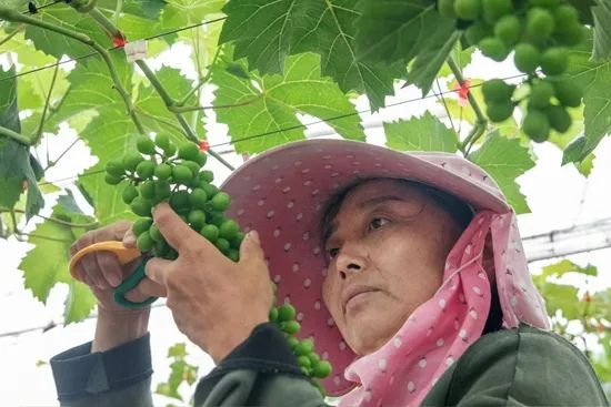 湖北省廣水市李店鎮飛躍村村民為鄉村合作公司葡萄園修枝。團廣水市委供圖