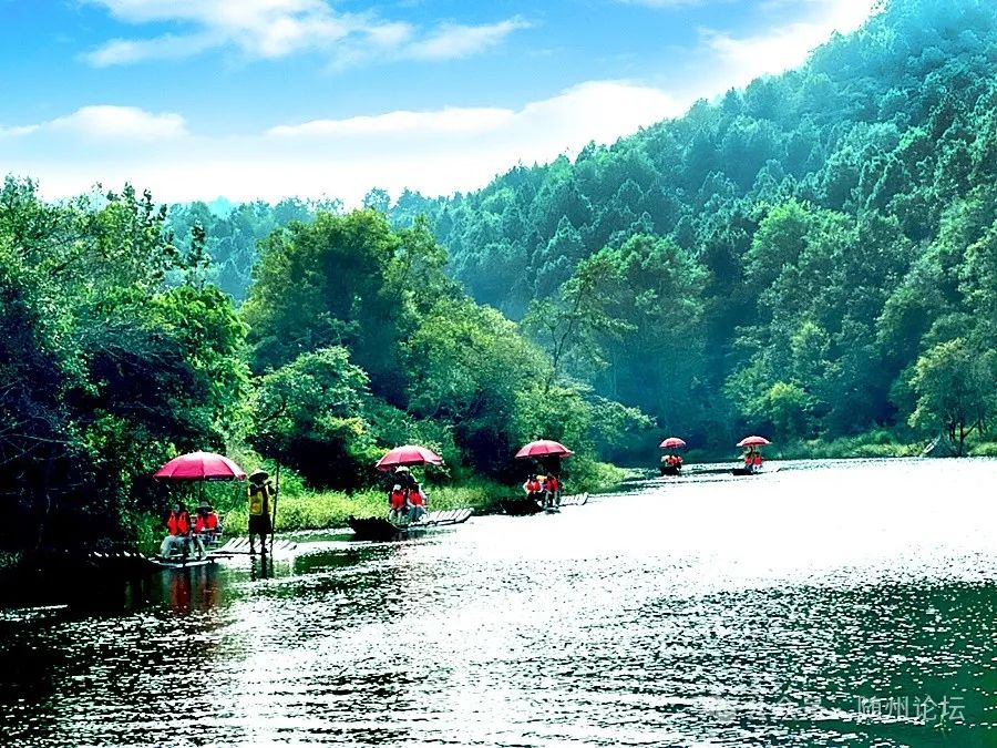 暮春的桐柏山北麓,淮河源頭的硯兒溝河碧波蕩漾,一葉葉竹筏載著游客順流而下,在鄂豫兩省交界處劃出優美弧線。
