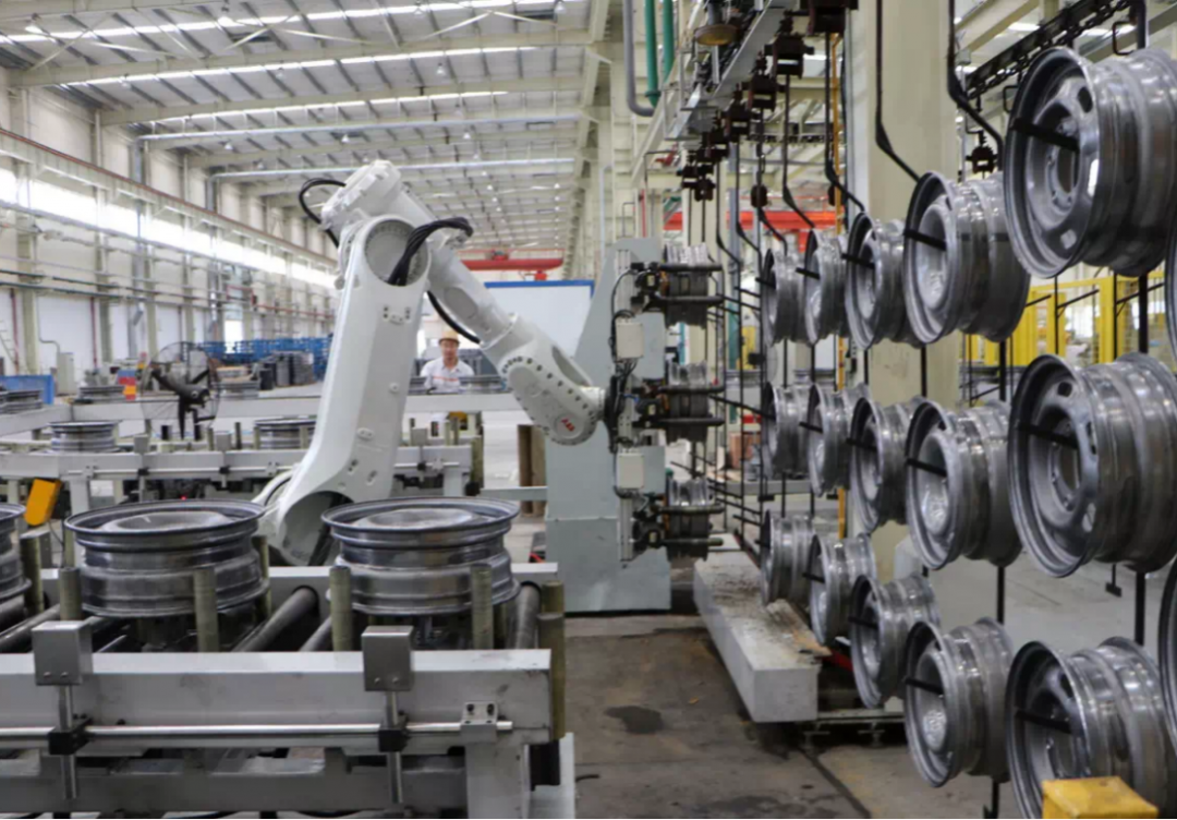 走進該公司鑄造、機加、涂裝三大車間,進入眼簾的是各類自動化裝備。只見車輪通過自動傳輸帶“爬樓”“穿墻”,穿梭于三大車間之間。以智能機器人為核心的加工中心主導(dǎo)了各個主要生產(chǎn)工序。