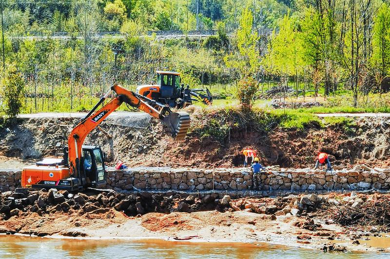 隨縣嚴(yán)格落實(shí)河長(zhǎng)制,汛期前組織對(duì)中小河流進(jìn)行綜合治理,通過加固硬化河堤、挖掘疏浚河道、改造排水管網(wǎng)等,不斷完善水利設(shè)施建設(shè),消除洪水隱患,提升防汛抗旱能力。圖為4月10日,隨縣殷店鎮(zhèn)漂水河王子城村段河道治理工程項(xiàng)目施工現(xiàn)場(chǎng)