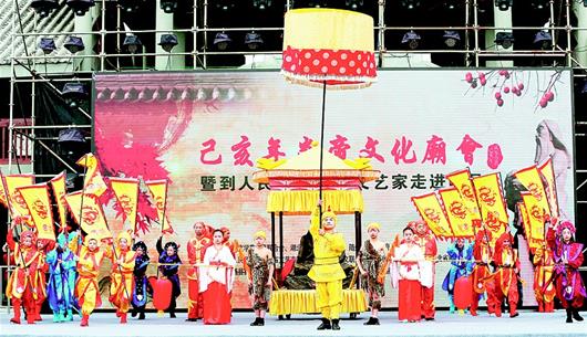 ????今年的廟會特別邀請了荊楚紅色文藝輕騎兵專業藝術表演團體,12個各具特色的文藝節目涉及歌舞、黃梅戲、京劇、楚劇、湖北大鼓等多種藝術形式,歡樂祥和、精彩紛呈,為現場觀眾獻上了一道豐盛的文化大餐。