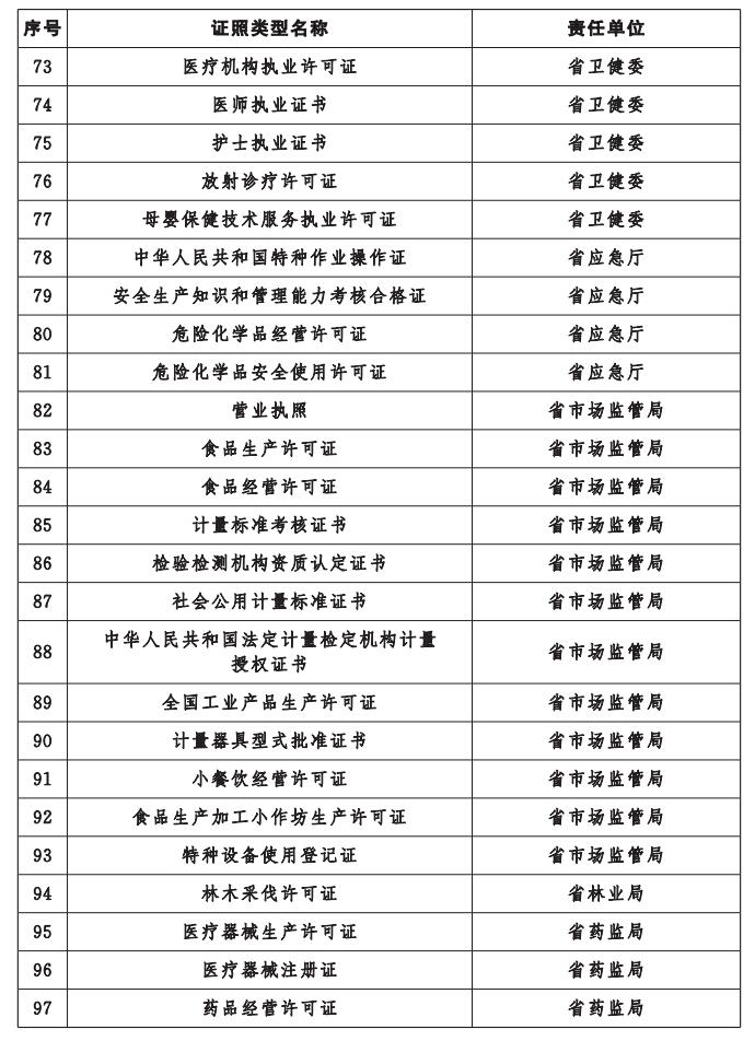 (一)加強電子證照共享調用,推進“免提交”方式。豐富我省可調用證照種類,及時發布電子證照清單并迭代更新。在已推出的51項高頻證照應用的基礎上,繼續加快社會保障卡、駕駛證、行駛證、教師資格證書等數據共享,2022年內推動100項高頻電子證照證明(見附件)在政務服務領域的廣泛應用。各地各部門要認真梳理事項材料,對照100項高頻證照在辦事指南標注免提交,優化完善政務服務業務系統與省一體化政務服務平臺的改造和對接,支持對已有電子證照自動關聯獲取,證照材料“免提交”。(省政務辦牽頭,省政府有關部門,各市州按職責分工負責)