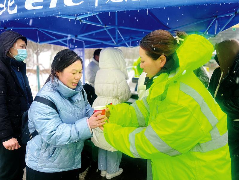 “開飯了,熱騰騰的面條、包子……”在各個站口職工食堂及會議室里,志愿者們共同打造了“向陽溫馨驛站”為司乘提供臨時取暖點及免費熱水、愛心餐等服務。“湖北人真熱情,雖然天冷,但心是暖的。家里人知道我在外地,有吃有喝的很放心。”來自江蘇的貨運司機丁師傅,在接過志愿者遞上的熱騰騰的面條時,不由得豎起大拇指,激動地說。