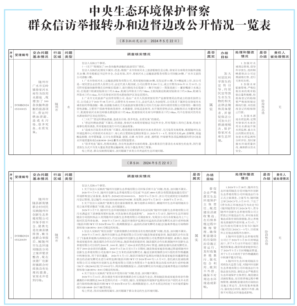 中央生態(tài)環(huán)境保護(hù)督察群眾信訪舉報(bào)轉(zhuǎn)辦和邊督邊改公開情況一覽表
