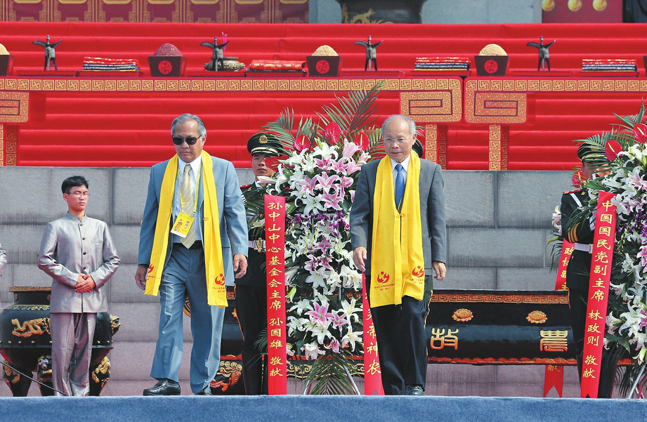 中國國民黨副主席林政則、孫中山中心基金會主席孫國雄敬獻花籃
