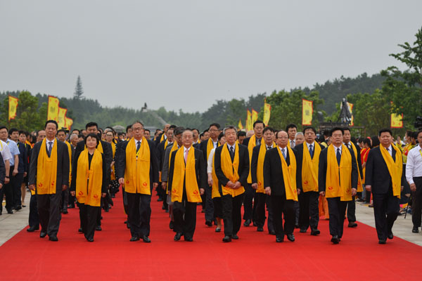 參加丙申年世界華人炎帝故里尋根節的領導和嘉賓步入大典現場