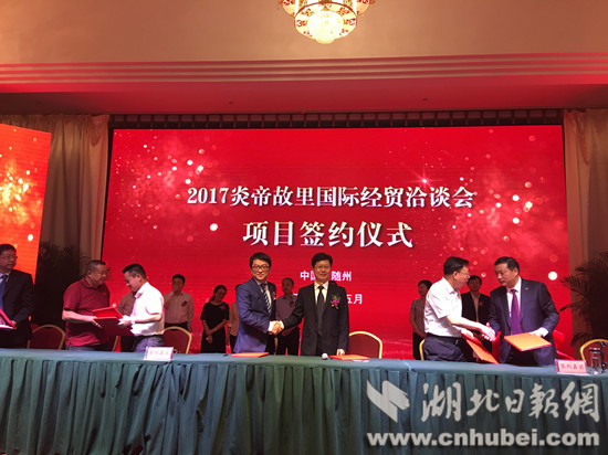 5月20日,2017炎帝故里國(guó)際經(jīng)貿(mào)洽談會(huì)在隨縣神農(nóng)國(guó)際大酒店舉行。本次洽談會(huì)共對(duì)接項(xiàng)目50多個(gè),現(xiàn)場(chǎng)簽約13個(gè),投資總額176億元。