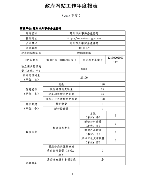 隨州市外事僑務旅游局網站工作年度報表(2017年度)