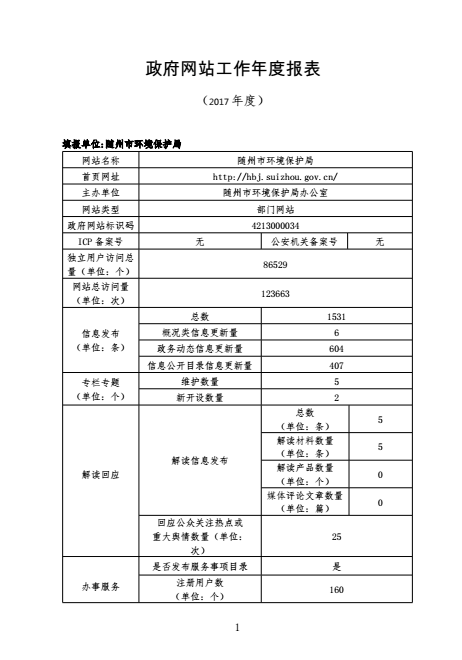 隨州市環(huán)保局政府網(wǎng)站年度工作報表(2017年)
