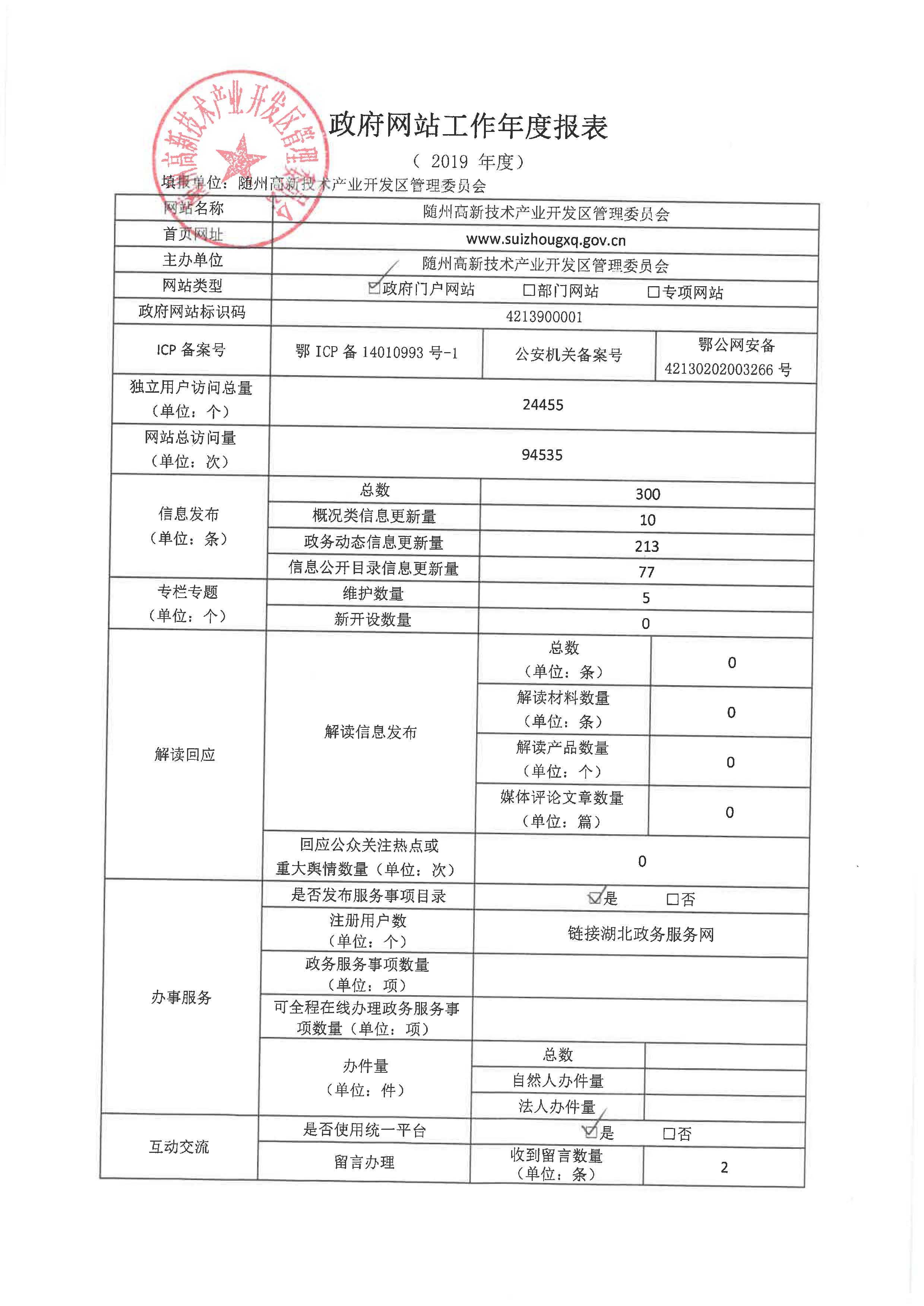 隨州高新技術(shù)產(chǎn)業(yè)開發(fā)區(qū)管理委員會(huì)2019年政府網(wǎng)站工作年度報(bào)表