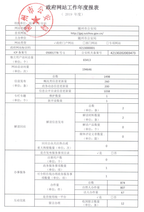 隨州市公安局政府網(wǎng)站工作年度報(bào)表