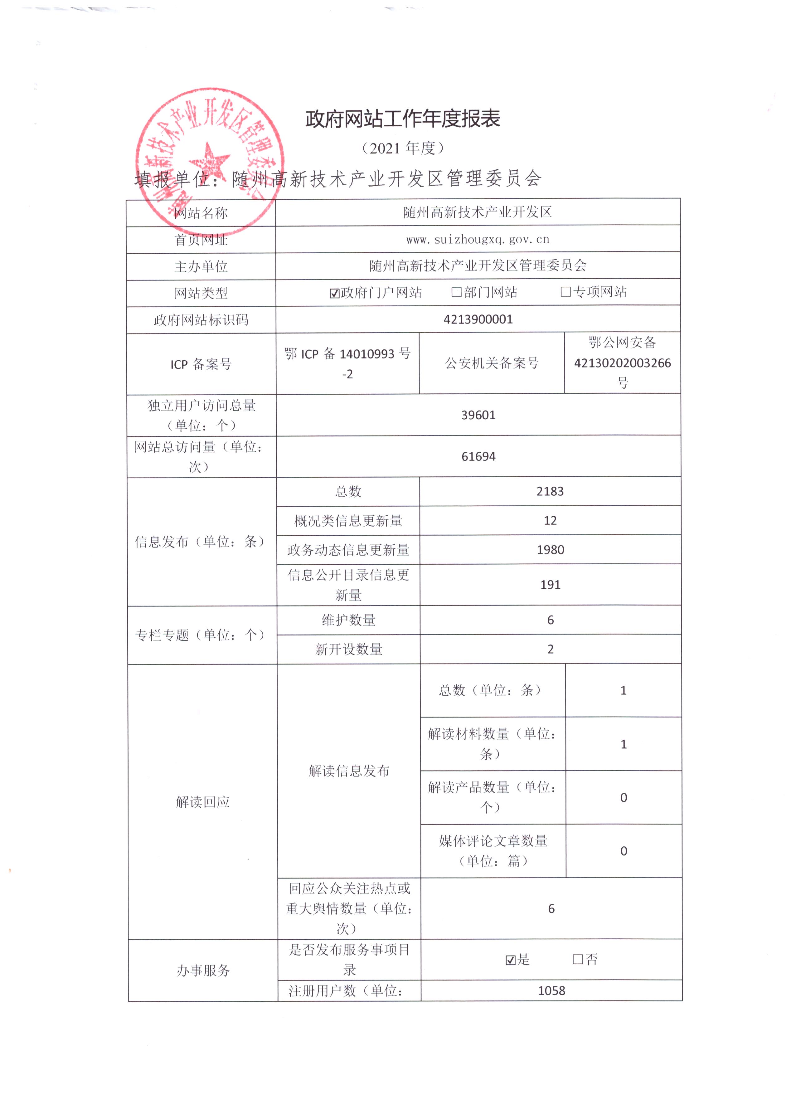 隨州高新技術(shù)產(chǎn)業(yè)開發(fā)區(qū)管理委員會2021年政府網(wǎng)站工作年度報表