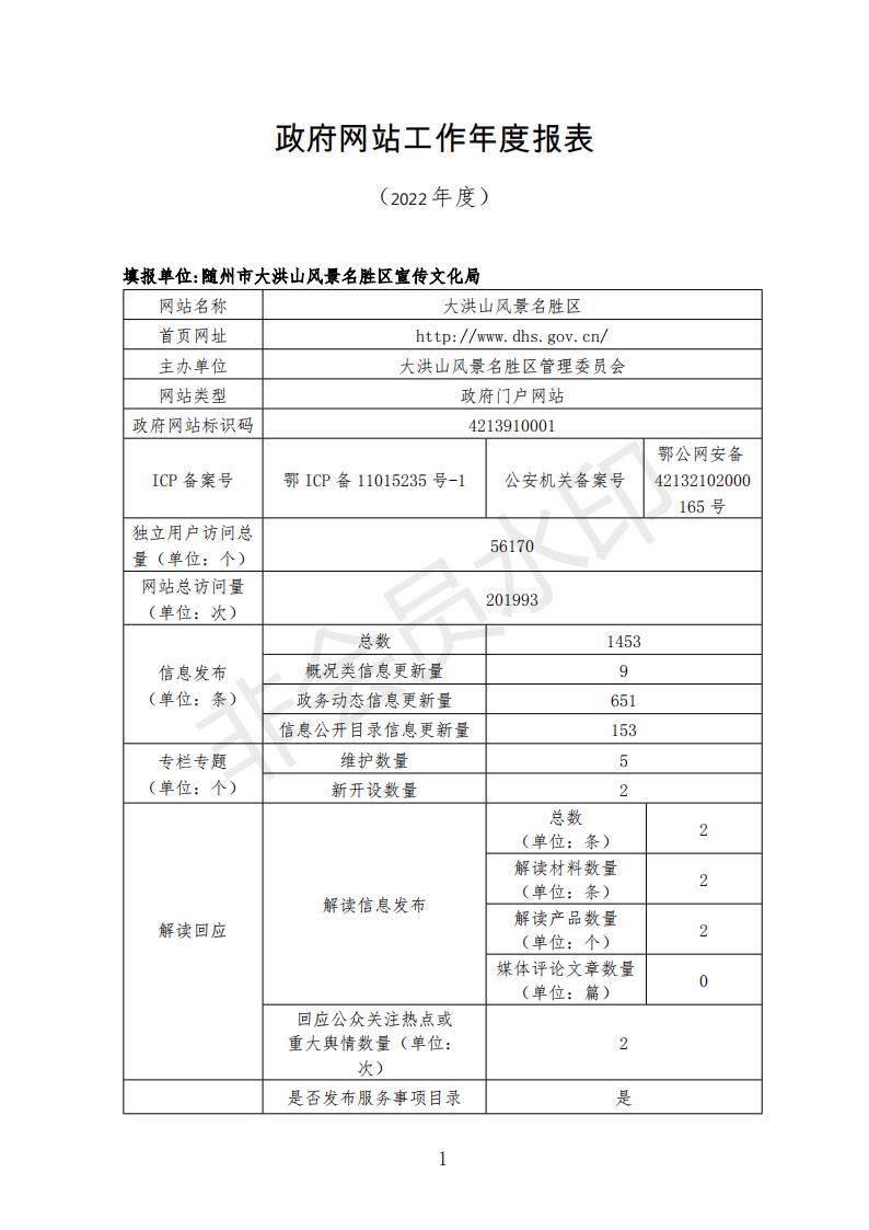 隨州市大洪山風景名勝區管理委員會2022年政府網站工作年度報表
