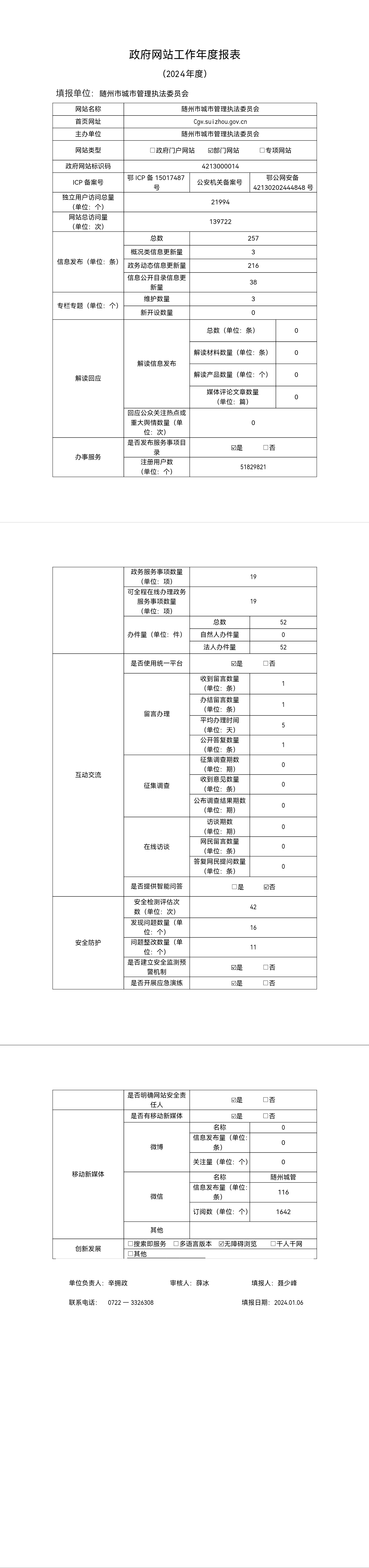隨州市城市管理執法委員會政府網站工作年度報表(2024年度)