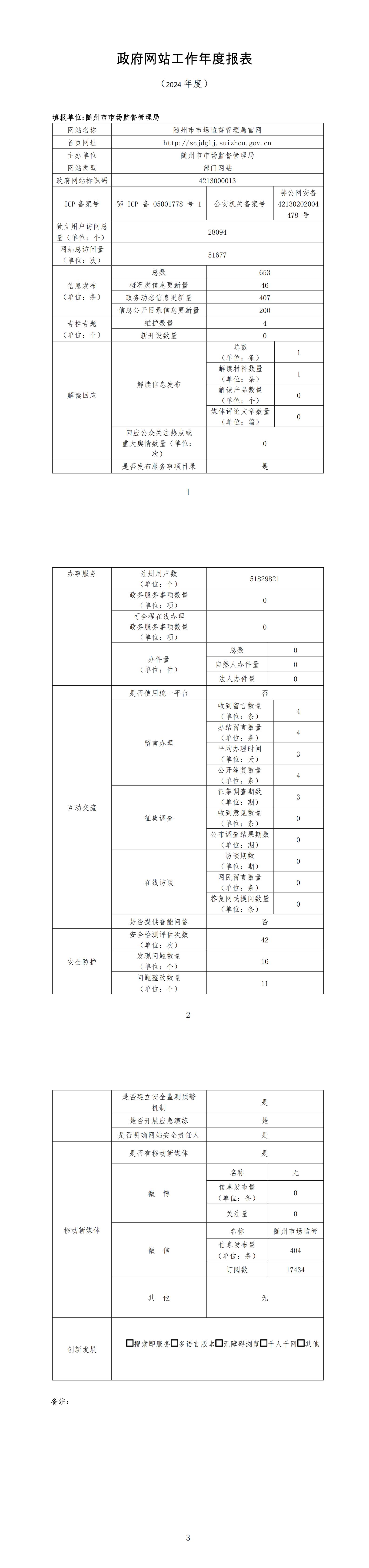 隨州市市場監督管理局2024年政府網站工作年度報表