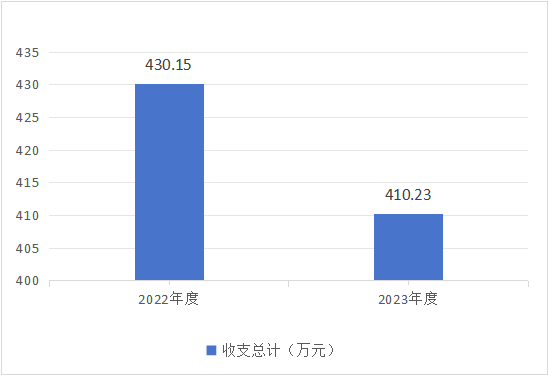 2023年度收、支總計均為410.23萬元。與2022年度相比,收、支總計各減少19.92萬元,下降4.6?%,主要原因是壓減開支。