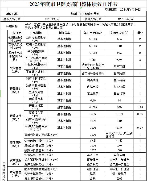 一、2023年度隨州市衛(wèi)生健康委整體績效評價自評表