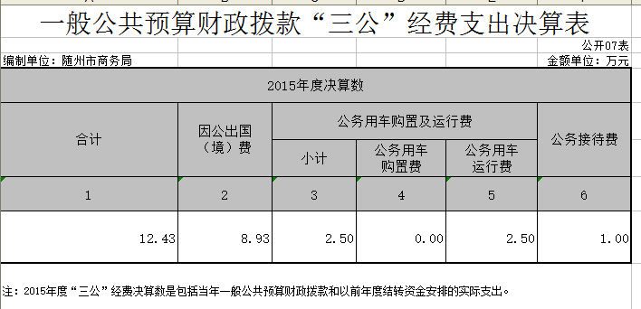 2015年“三公”經費支出12.43萬元,其中公務接待費1萬元,公車運行費2.5萬元,因公出國費8.93萬元。比2014年支出減少23.57萬元,其中公務接待費減少4.1萬元,公車運行費20.2萬元,因公出國費與2014年持平。