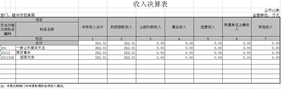2015年度收入合計(jì)262.01萬(wàn)元。其中:財(cái)政撥款收入262.01萬(wàn)元。