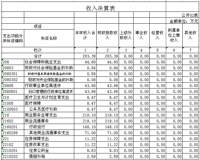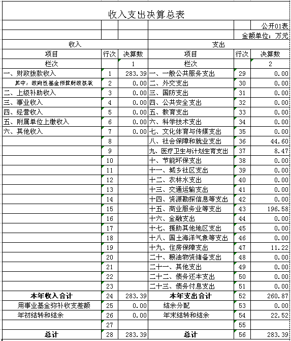2015年部門收入283.39萬元,其中財政撥款收入283.39萬元。比2014年收入235.55增加48.35萬元,增加原因:1、公務員預增資增加了財政撥款。部門全年支出260.87萬元,其中:工資福利支出120.69萬元,商品和服務支出14萬元,對個人和家庭補助支出55.18萬元,