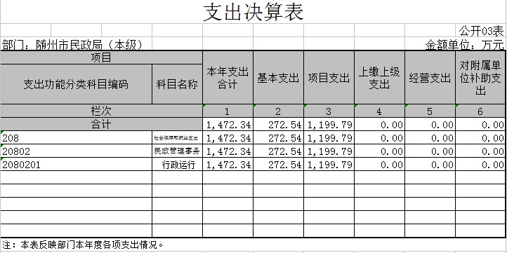 2015年支出決算1472.34萬元,其中:基本支出272.54萬元,項目支出1199.79萬元,結余385.36萬元。