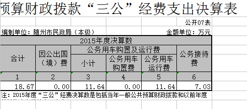 2015年,我局預算單位“三公”經費公共預算財政撥款支出18.59萬元,其中:公務用車運行維護費11.64萬元,公務接待費7.3萬元。