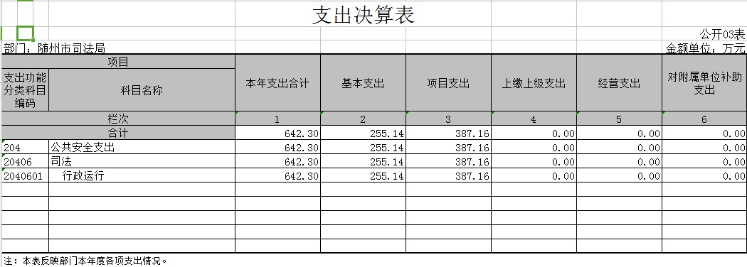 根據《市人民政府辦公室關于做好2015年政府信息公開工作的通知》(隨政辦函【2015】39號)要求,現將隨州市司法局2015年部門決算予以公開,有關情況說明如下: