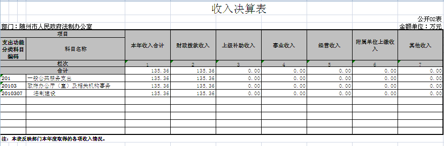 市政府法制辦2015年度總收入135.36萬元,比2014年度減少了3.03萬元。
