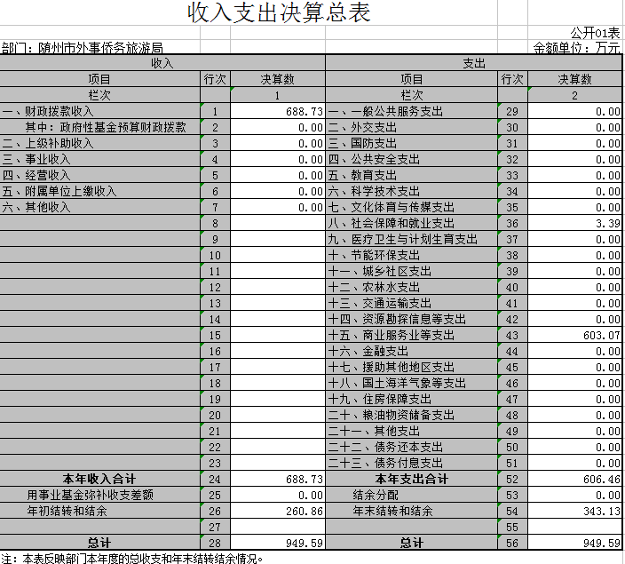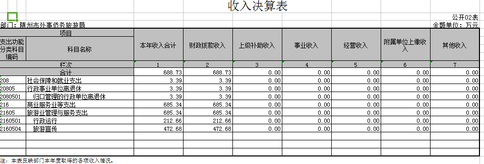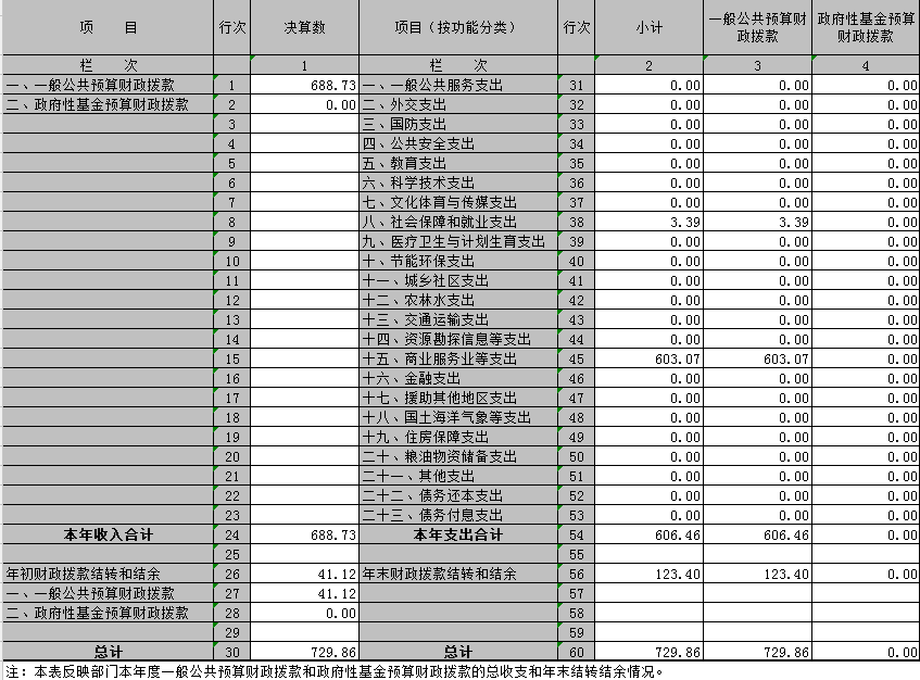 2015年收入共計688.73萬元,其中基本支出為216.06萬元,項目支出472.68萬元,2014年年末結(jié)轉(zhuǎn)結(jié)余資金41.12萬元。本年支出合計606.46萬元,其中基本支出216.06萬元,項目支出390.40萬元,年末結(jié)轉(zhuǎn)和結(jié)余資金合計123.40萬元。