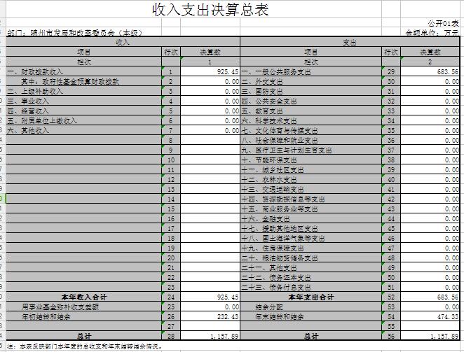 2015年發改委機關及二級單位收入總計1226.01萬元,其中財政撥款收入978.02萬元,其他收入15.31萬元,上年結轉232.67萬元。支出總計727.26萬元,其中發改委本級683.56萬元,農業區域辦公室18.5萬元,節能監察中心25.2萬元。