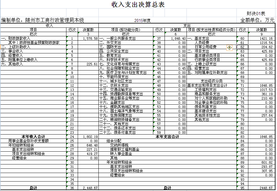 1、2015年決算收支情況