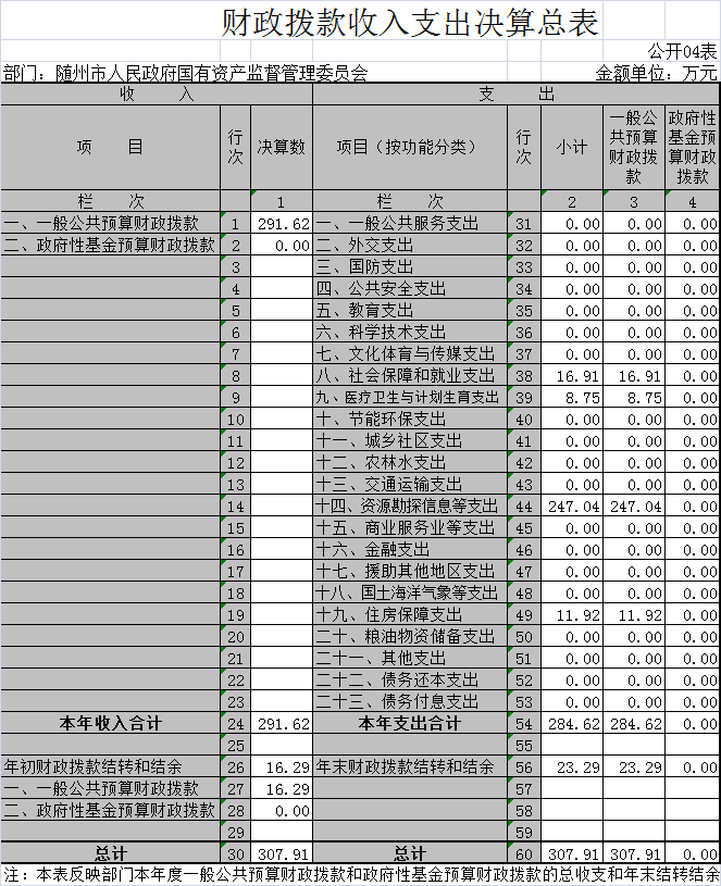 依據《市財政局關于批復2016年度部門決算的通知》(隨財發〔2016〕31號)文件,2016年度市政府國資委部門決算總體收支情況如下: